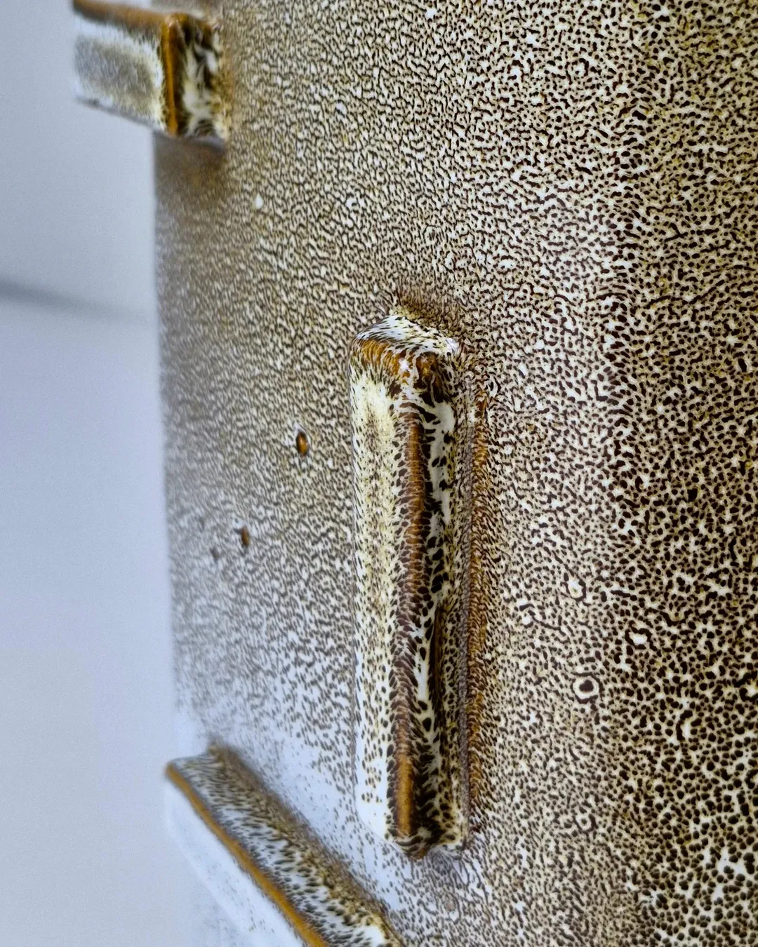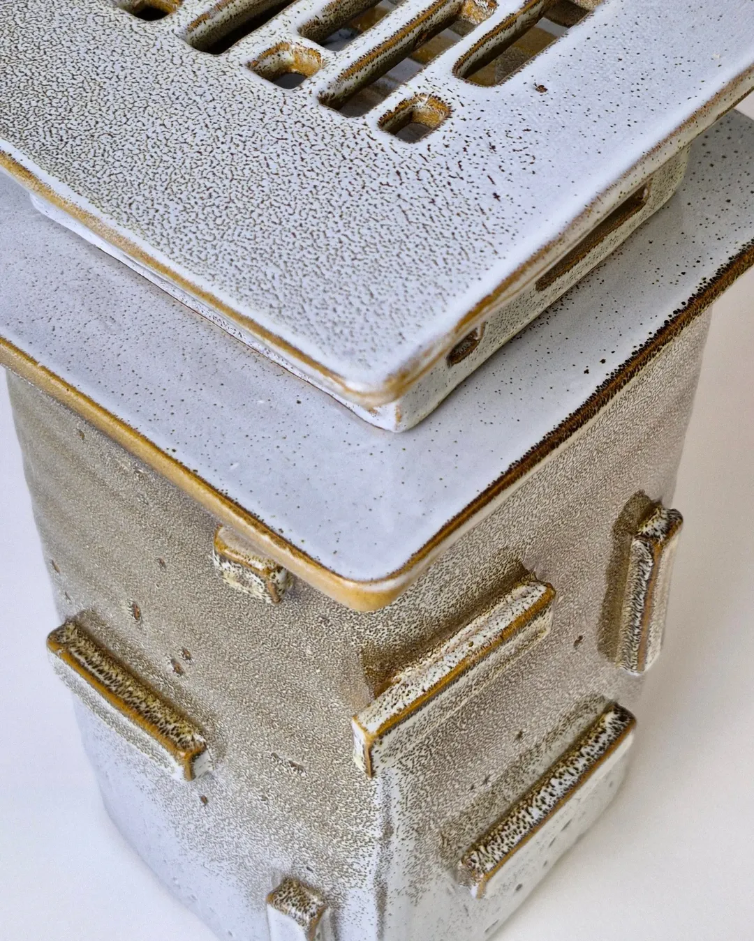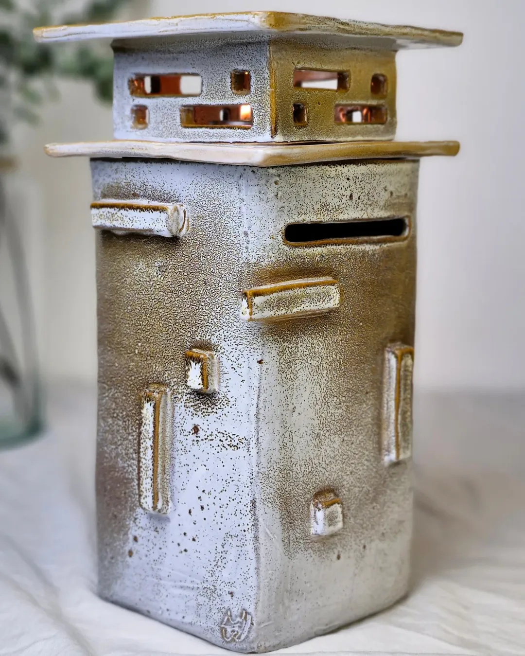 این اثر از مجموعهی محصولات تکرارنشدنی آزیتا لعابی است. قلکی سهتکه، با فرمی حسابشده و الهامگرفته از ساختار معماری. در فرایند ساخت آن از سه نوع لعاب متفاوت استفاده شده تا جلوهای چندلایه و عمیق خلق شود؛ لعابی که در هر زاویه، نوری تازه بازمیتاباند. این اثر حاصل یک شب بیداری و تمرکزِ کامل است— قلکی که برای باز شدن ساخته شده، نه برای شکستن. برای من، «ژرفا» فقط یک شیء نیست؛ تمرینیست در صبر، نظم و دلبستگی. این قلک تکرارنشدنی است و دیگر ساخته نخواهد شد. .
