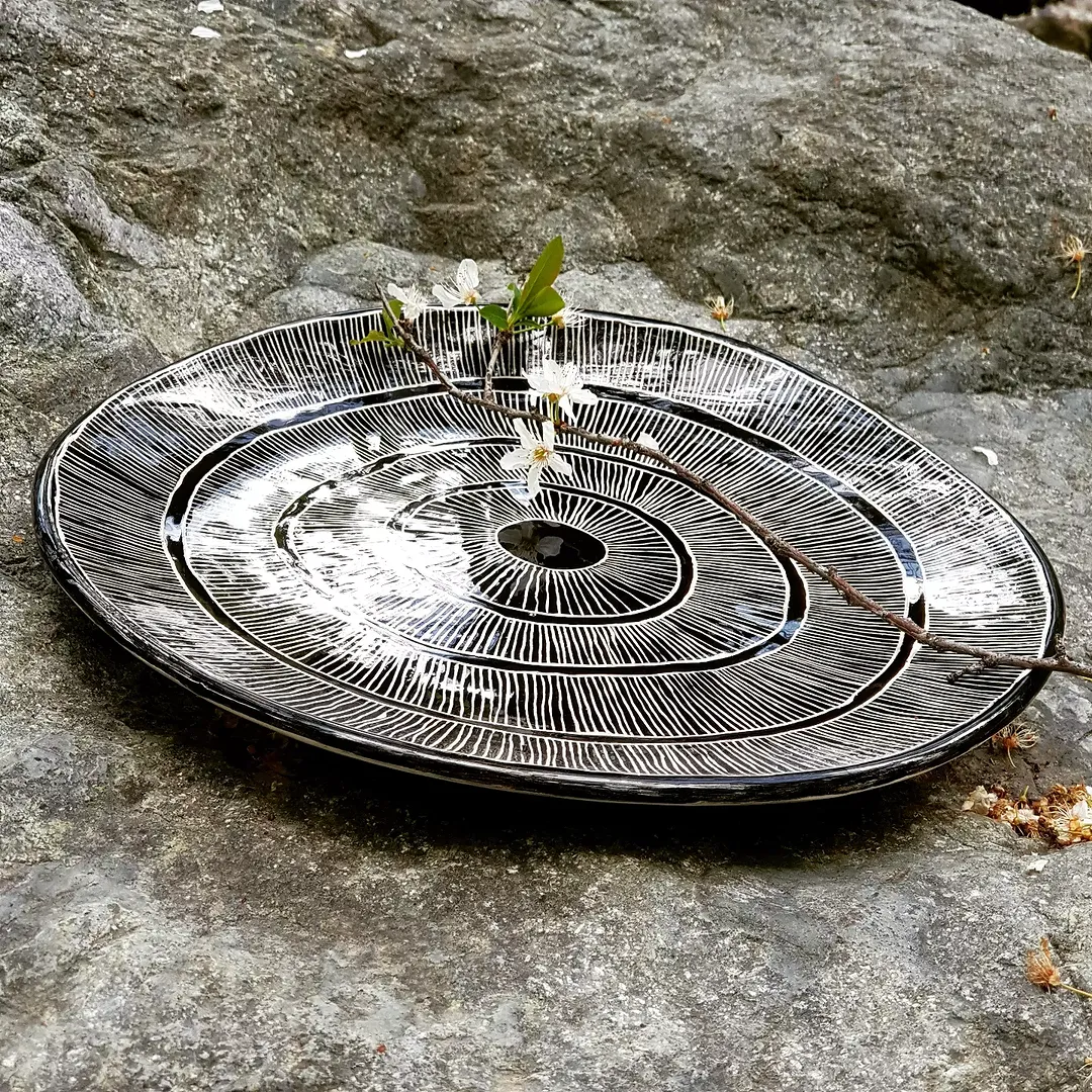 لطفاً توجه داشته باشید که هر قطعه کاملاً دستساز و با دست نقاشی میشود، بنابراین ممکن است طراحی آن کمی با نمونهی نمایشدادهشده تفاوت جزئی داشته باشد . به دلیل دستساز بودن، هر محصول دارای جزئیات منحصربهفردی است که به آن هویت خاصی میبخشد.